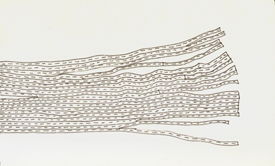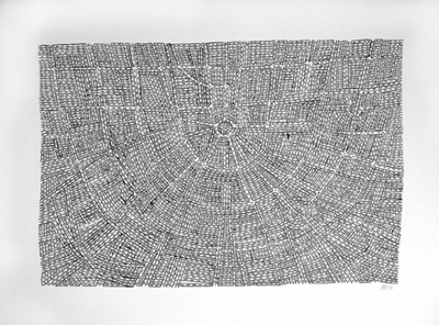 The verb Crossing signifies movement, a movement which is not uniform but which is drawn back and forth. In my drawings I try to capture the delineation of movements of thought processes occurring in space and time, between here and there, between the point of departure and arrival. The journey of the line marks the surface turning it into visual patterns. What you see is a physical manifestation of the layers of routes and directions taken in this process, revealing its manifold meanings.